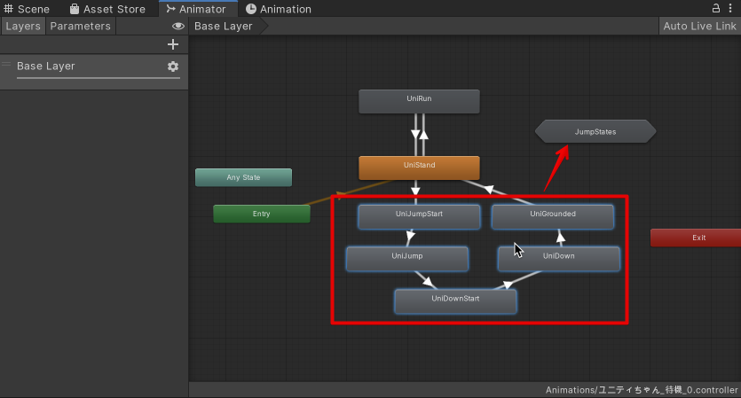 アニメーション遷移 Unity マニュアル